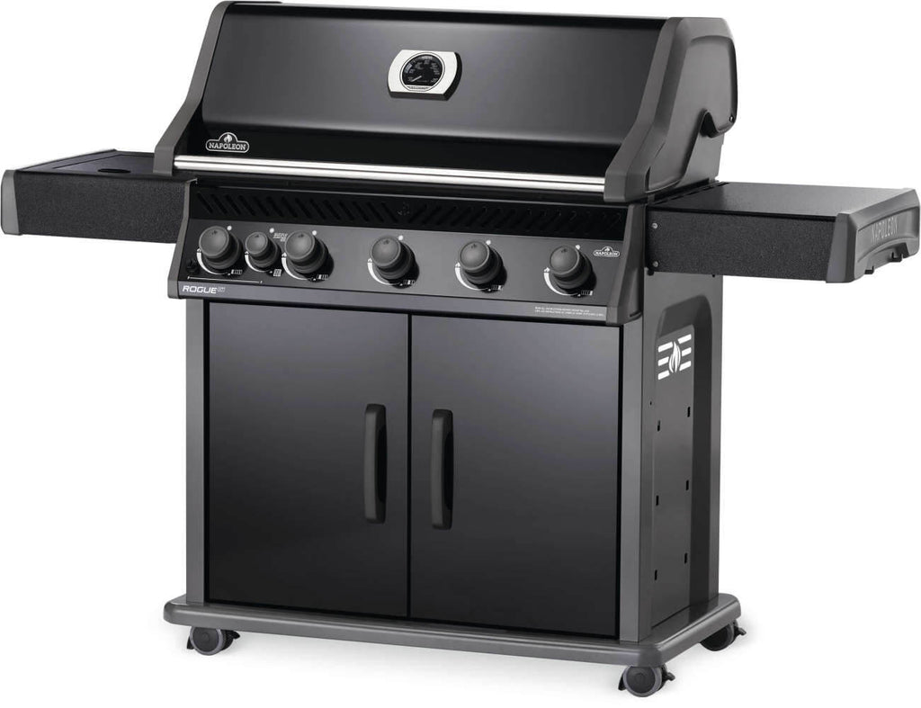 NapoleonBBQ your way with high-quality grilling at an affordable price, the Rogue® XT Natural Gas Grill with Infrared Side Burner in black is a versatile addition to any backyard. This grill is made from durable stainless steel and features folding side shelves for extra space. Easily move to where the action is with the locking casters. Inside, dual level sear plates vaporize drips and five tube burners light instantly with the JETFIRE™ ignition system. Feed a crowd; with 980 square inches of total cooking area which includes the infrared side burner, it's no trouble at all. You'll know it's a Napoleon with the iconic porcelain coated cast iron WAVE™ cooking grids for those distinctive sear marks. BBQ your way and use this grill to sear, smoke, sizzle, bake, grill, roast and authentic charcoal grilling. Grill different and go Rogue® with the Rogue® XT 625 Gas Grill.