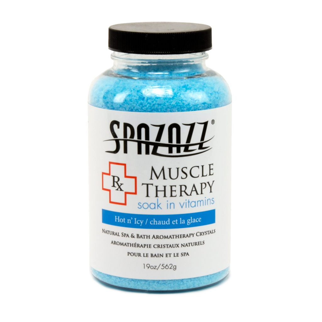 SpazazzSpazazz Muscle Therapy Hot N' Icy Rx Aromatherapy Crystals for hot tubs and bath, is the enlivening blend of sensual aromas with therapeutic benefits and moisturizing botanicals. Soak in vitamins as you relax in warm water. Feel the calm, natural release of aches and pains as tension melts away.