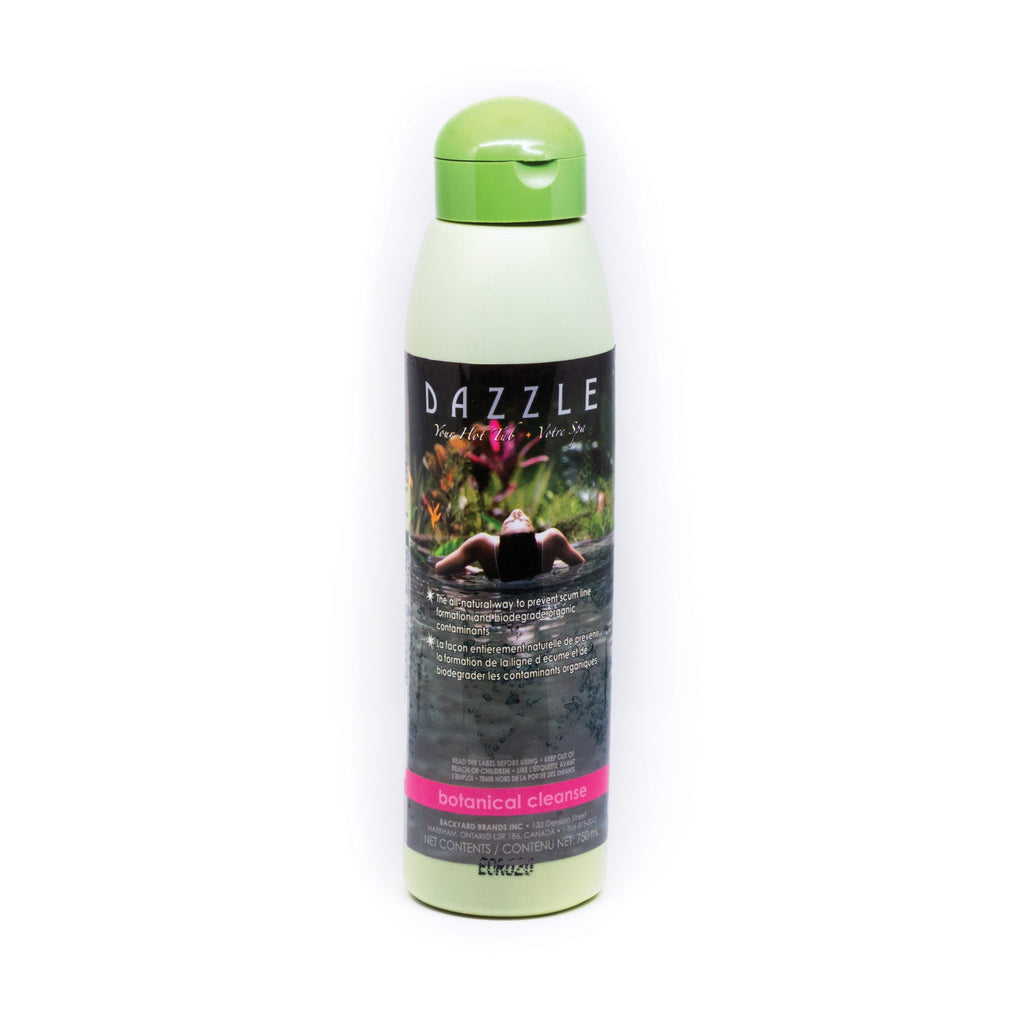 DazzleConcentrated, Ôeco-friendly,Õ dual-action enzymes, formulated specifically for hot tub water. Digests organic bather waste build-up, prevents scum-line formation and reduces the demand on sanitizers and shocks. Enzymes break down waste into water and carbon dioxide. Also helps improve water comfort and suppresses chemical odours.