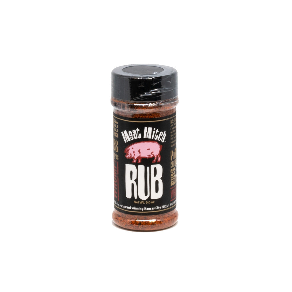 Meat Mitch Rub An unbelievable blend of spices that have been married together to accentuate the taste of anything from hog jowl to the money muscle. We built Meat Mitch Rub for war and we ain't takin' any prisoners...it has the perfect amount sweet, a dabble of heat, but doesn't lose that little hint of salt that throws you over the edge. Take Meat Mitch Rub to your next battle, cuz winners win, Jim.