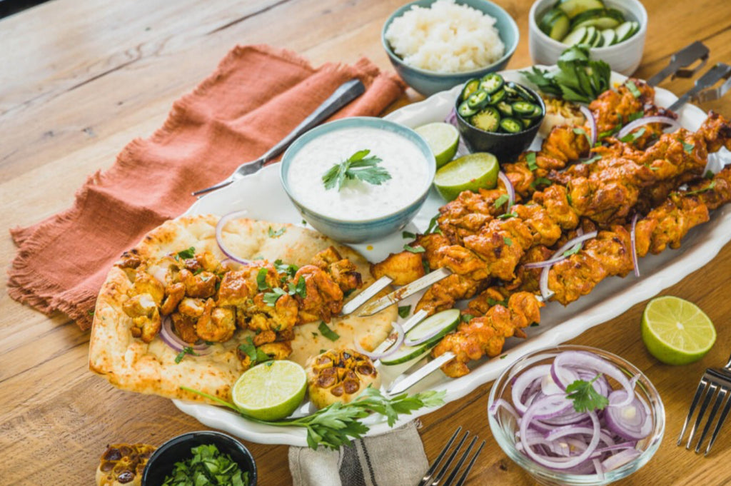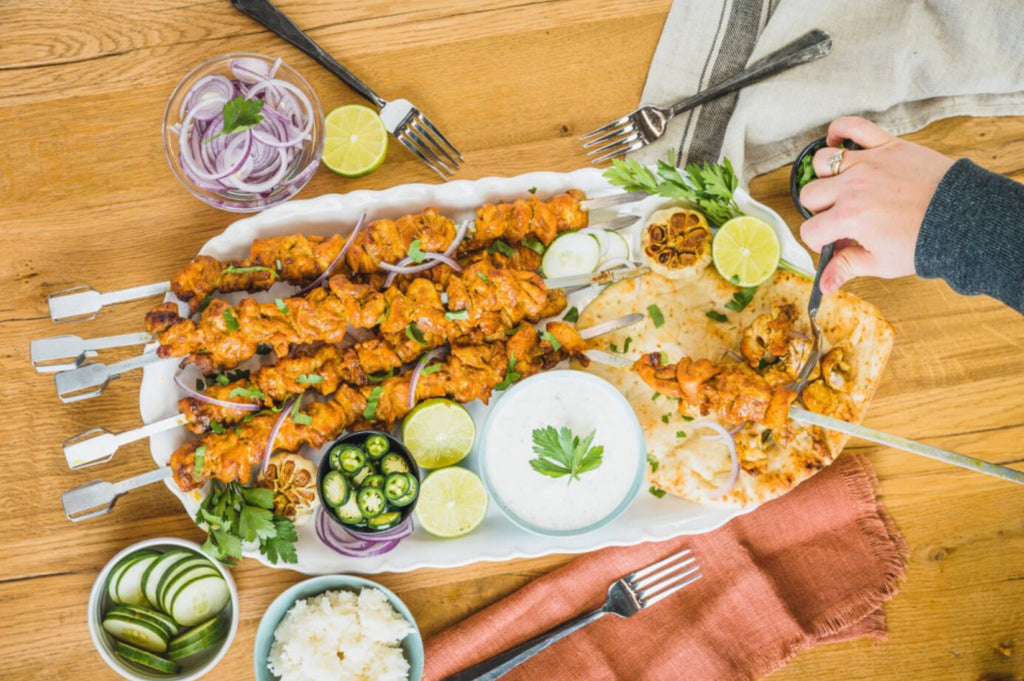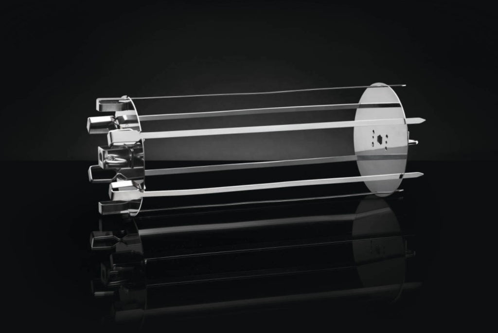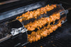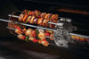 • Set contains six (6) chrome plated skewers and two (2) rotisserie plates to hold the skewers in place