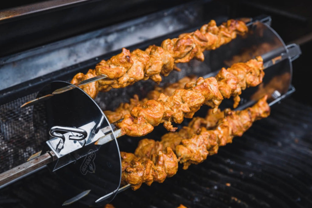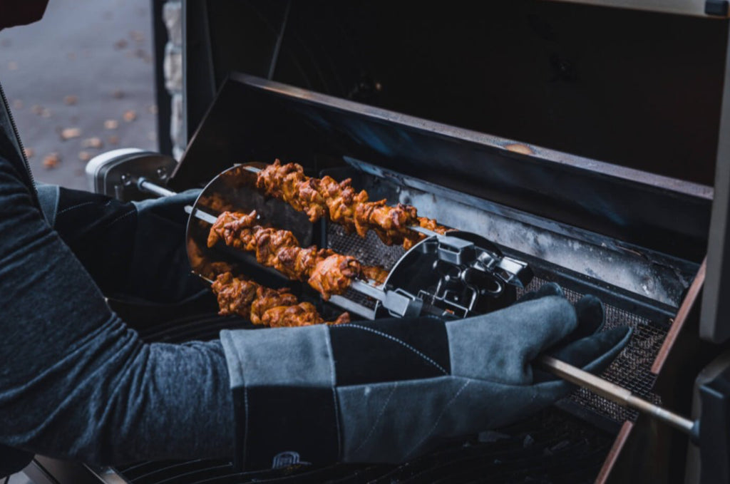 • Use a rear rotisserie burner or the main bottom burners of the BBQ grill to cook